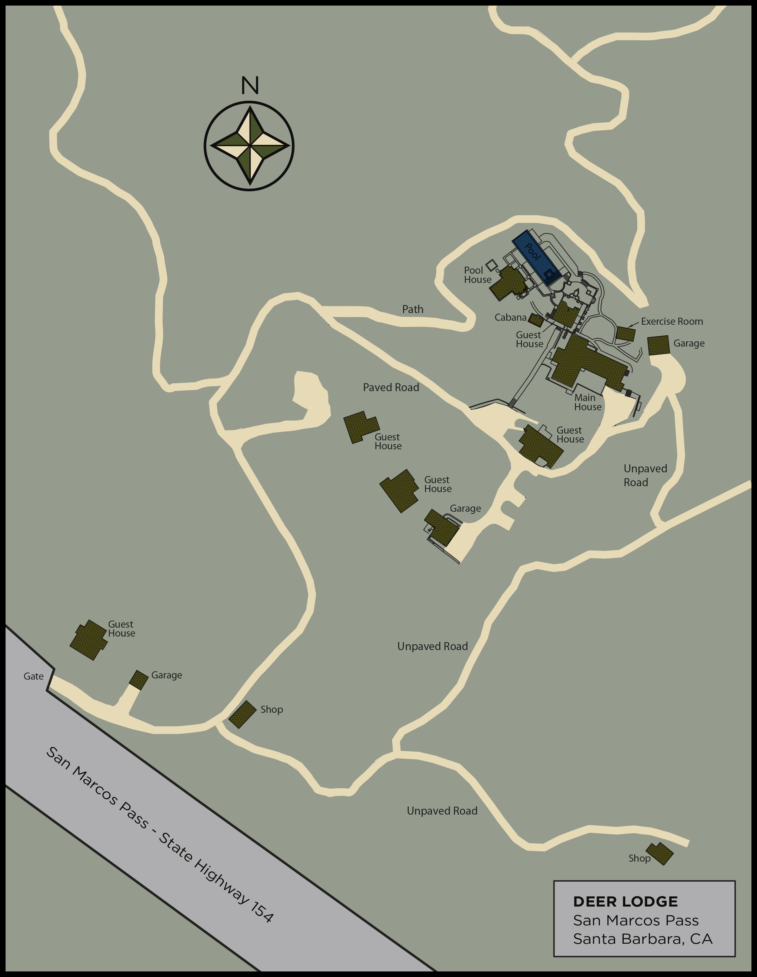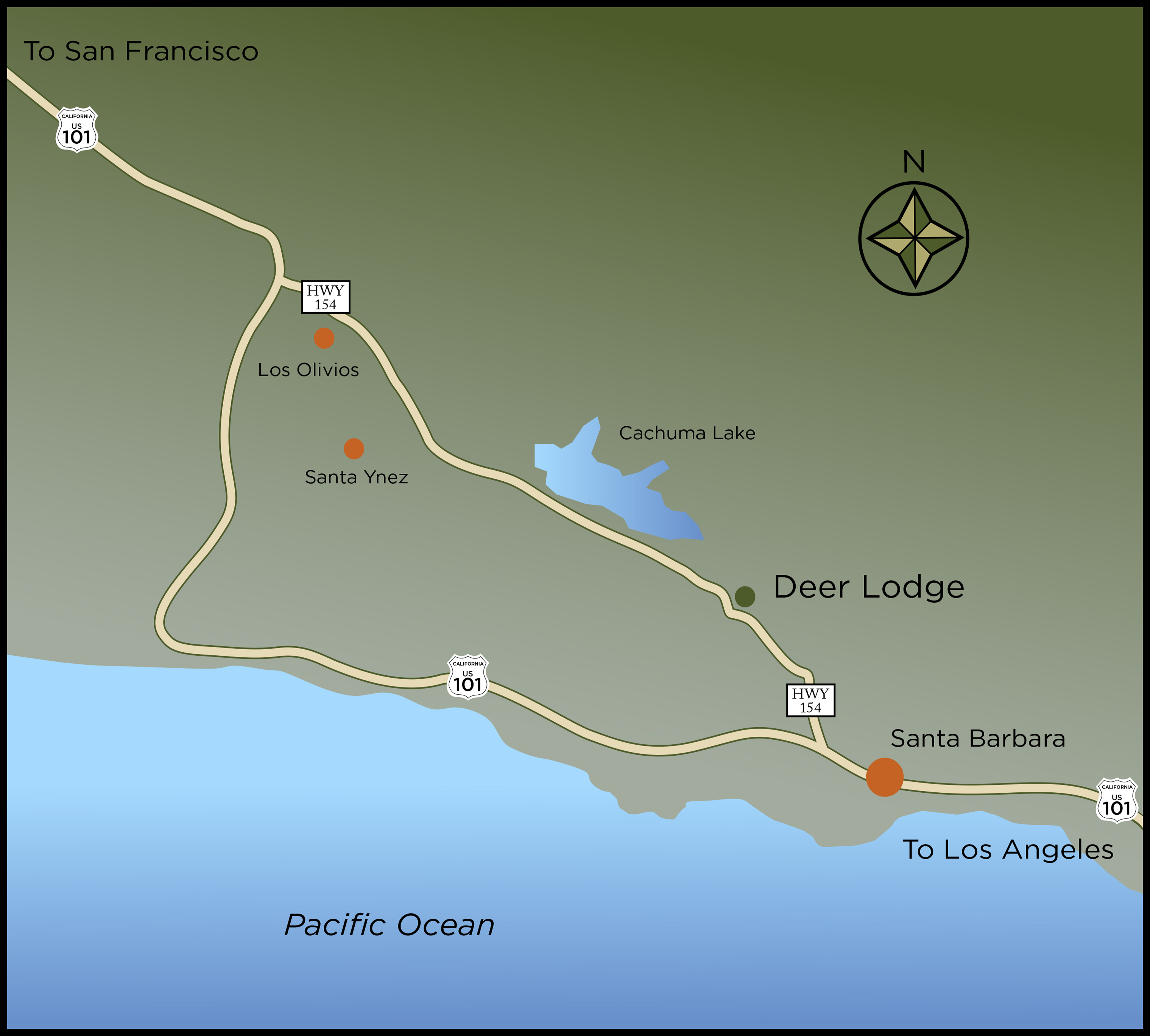 Halfway between the idyllic beaches of Santa Barbara and the acclaimed Santa Ynez Valley wine region, at the crest of San Marcos Pass is approximately 187 acres of oak woodlands that make up the enchanting Deer Lodge, a magical and historic family compound like no other. Originally purchased in 1893, the property has an impressive pedigree of ownership including the John Deere family for seven decades.